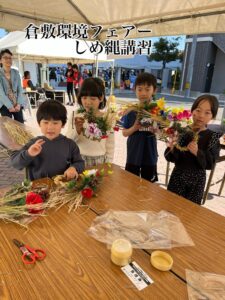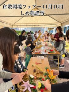 倉敷環境フェアー しめ縄講習 2025年12月1日 最終更新日時 : 2025年12月1日 hanakoubou 毎年行われている 倉敷環境フェアーに 今年も参加してきました 今年は 画像のごとく 小学生の参加が多く 縄を編むところから 指導したのですが 皆さん 上手に編むことができ 30分程で 完成できたのには 驚きました